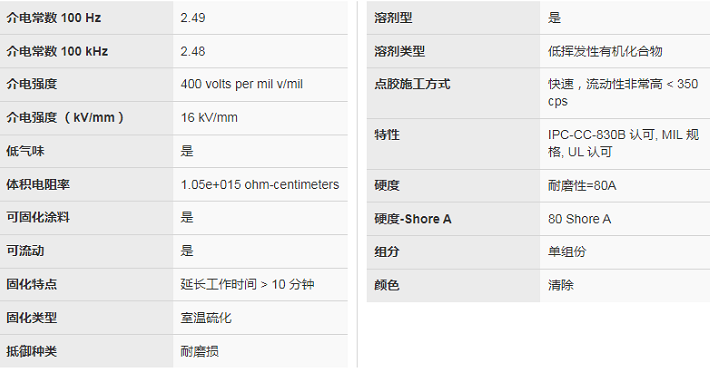 单组分、透明低粘性敷形涂料、固化后具有坚固耐磨表面。低VOC型的1-2620。