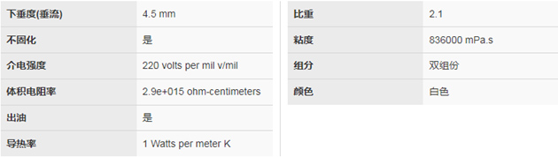 单组分、白色、非固化、导热性化合物,适合用作照明组件、电信设备、消费类电子产品、交通运输电源和电组件的热界面材料