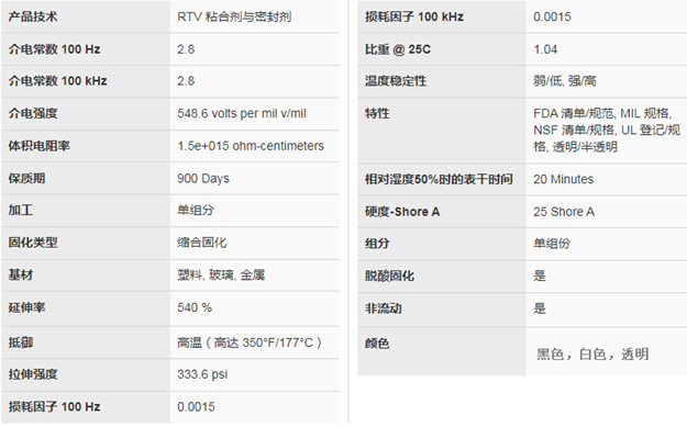陶熙732的特性是非流动性,应用于架空或侧壁表面不会产生滑动或垂流现象,它优异的耐天候、防振动、防潮,耐臭氧、耐高温性能;道康宁732使用温度范围广,固化后(多种颜色),在-62~232℃下连续使用仍可保持弹性,在260℃时,可间歇使用。如果需要在较高温度下使用时,黑色的道康宁732多用途密封胶可在232℃下连续使用并保持弹性,而且间歇使用温度达280℃;与各种表面粘合良好;100%的硅橡胶。