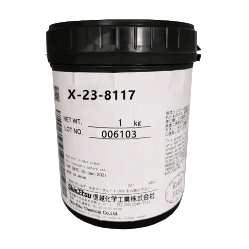 信越 X-23-8117散热膏是一种加入大量导热金属氧化物填料的油脂状材料,这种复合物具有高热导率、低渗油量和良好的高温稳定性。它有助于保持可靠的散热器密封性,这将改善从电气/电子元器件至散热器或底盘之间的热传递。